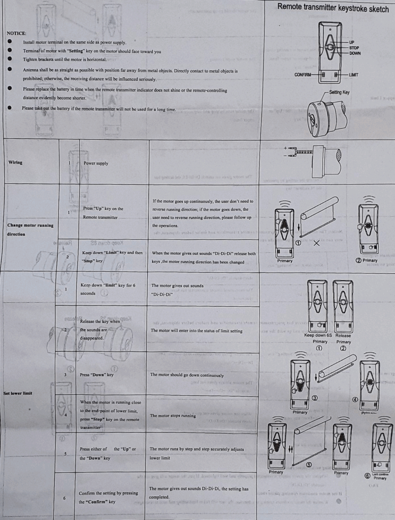 모터 설치 후에는 블라인드의 동작 범위(리미트 값)를 설정해야 합니다.