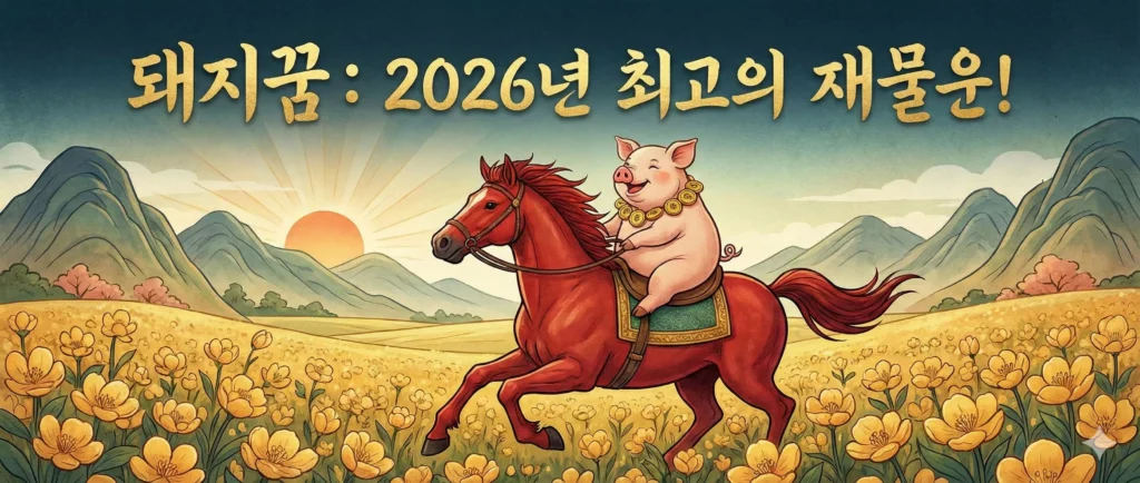 - 돼지(豚) 꿈: 말이 돼지를 등에 태우고 들어온다면? 이는 불의 기운(명예)과 돼지의 기운(재물)이 합쳐지는 형상으로, 2026년 가장 큰 재물운을 상징합니다.