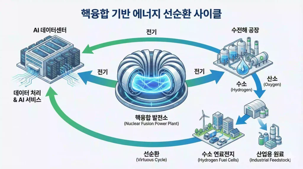 독립적인 로드맵이라는 오해: 핵융합과 수소 경제는 별개가 아닙니다. 전기를 무한정 만들어내는 핵융합과, 그 전기를 청정 연료로 바꾸어 저장/활용하는 수소 에너지는 반드시 하나의 로드맵으로 연계되어야 완벽한 시너지를 냅니다.