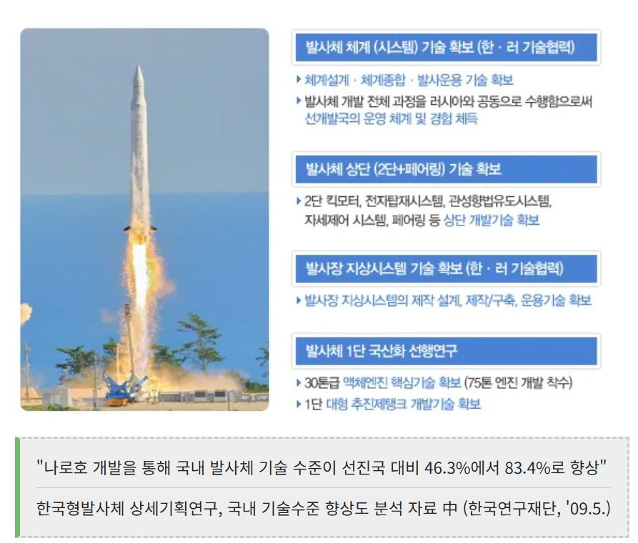 - 의미: 1단 로켓은 러시아가 제작했지만, 2단 킥모터와 발사대 시스템 운용 경험을 통해 우리는 ‘시스템 통합 능력’과 ‘실패를 관리하는 노하우’를 배웠습니다. 이는 훗날 누리호 성공의 밑거름이 됩니다.