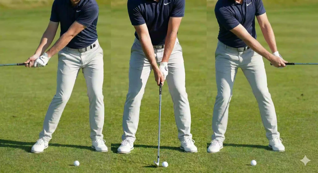 아마추어 골퍼들이 가장 많이 오해하는 부분 중 하나가 “골반을 밀어야 한다”고 생각하는 것입니다. 테이크어웨이 시 오른골반은 옆으로 밀리는 것이 아니라, 뒤로 회전해야 합니다.